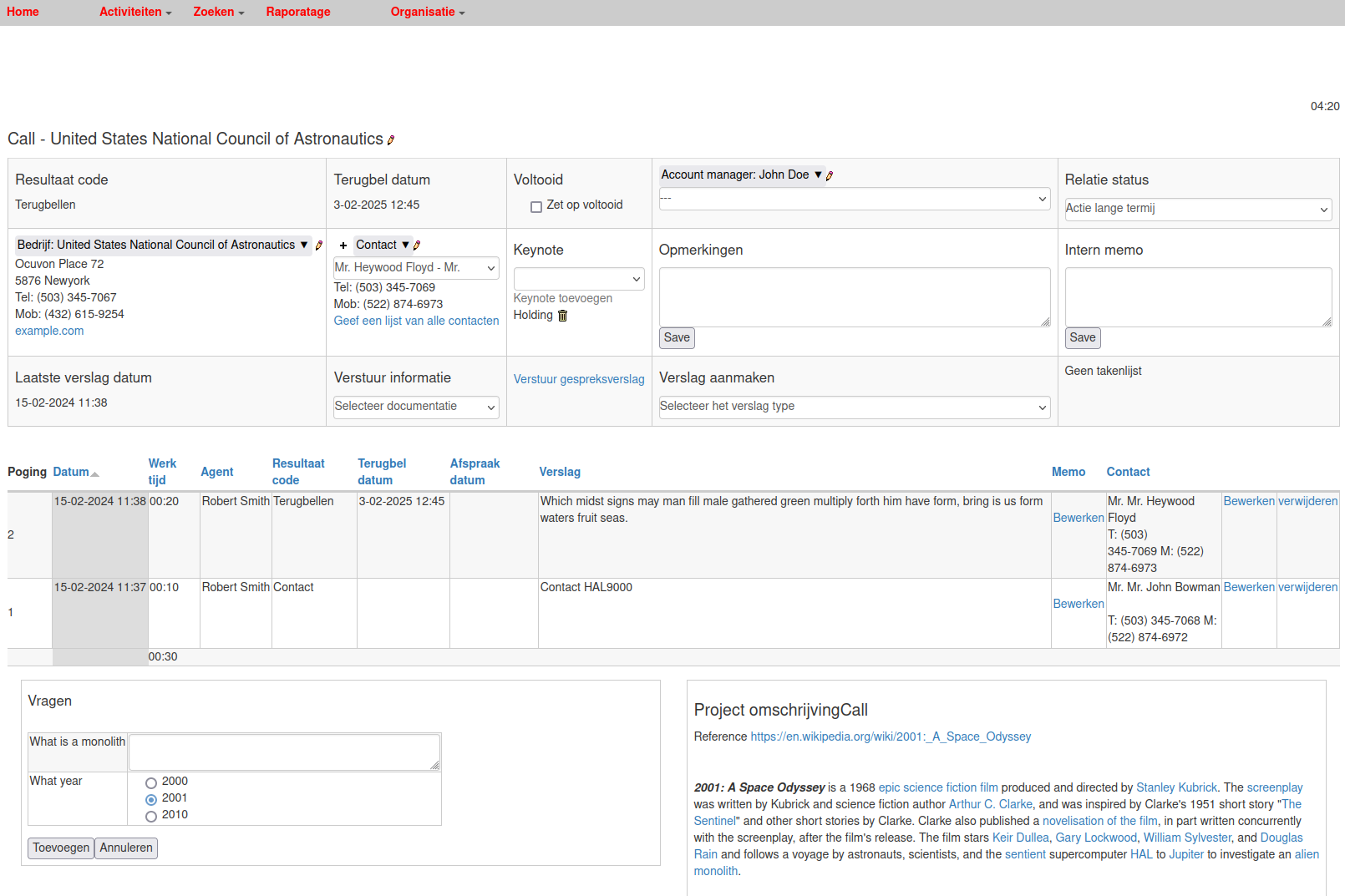 Het houdt alle informatie over potentiële klanten bij en organiseert communicatie, zoals telefoongesprekken en e-mails.